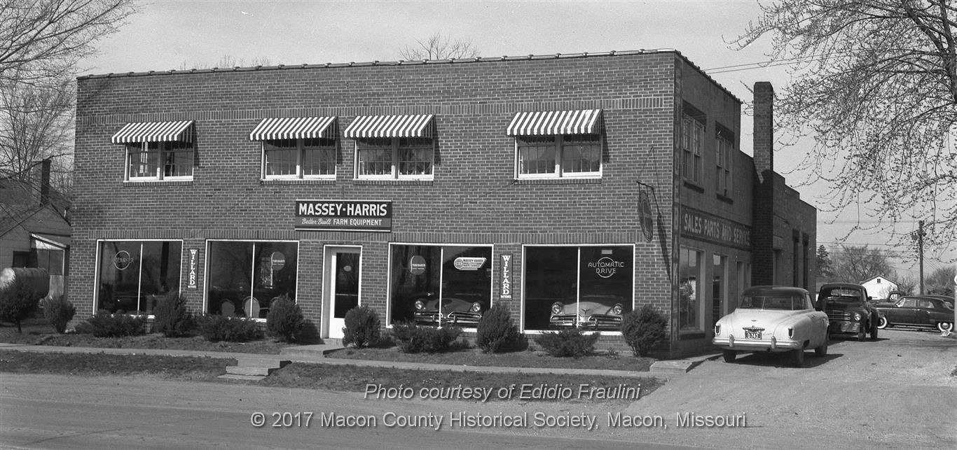 Walls Motor Company’s Studebaker and Massey-Harris Dealership, Macon, MO, 1954.