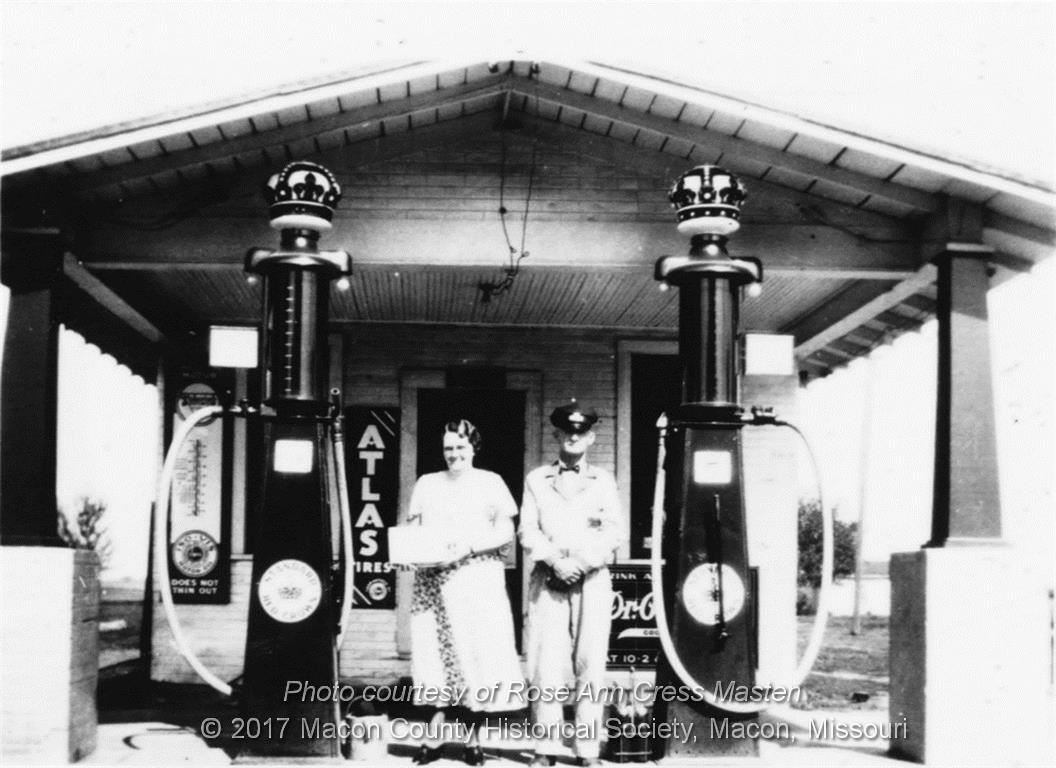 Polite’s Red Crown Service Station, Grocery Store, Cabins and Campground; Ida and Eicle Polite, proprietors; 500 block of South Missouri Street; circa 1920s. The Polites pioneered the combination convenience store concept. Photo courtesy of Rose Ann Cress Masten.