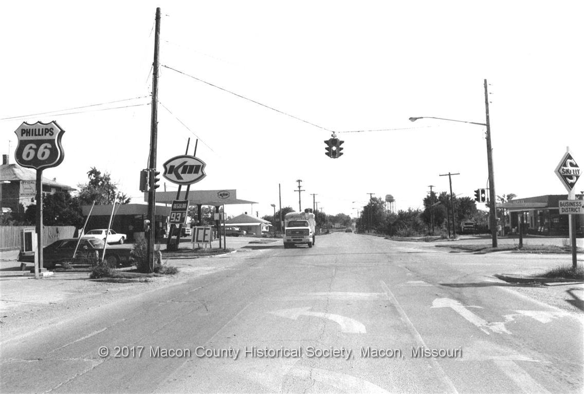 Looking south at the junction of Vine Street and Highway 63, Macon, MO circa 1980.